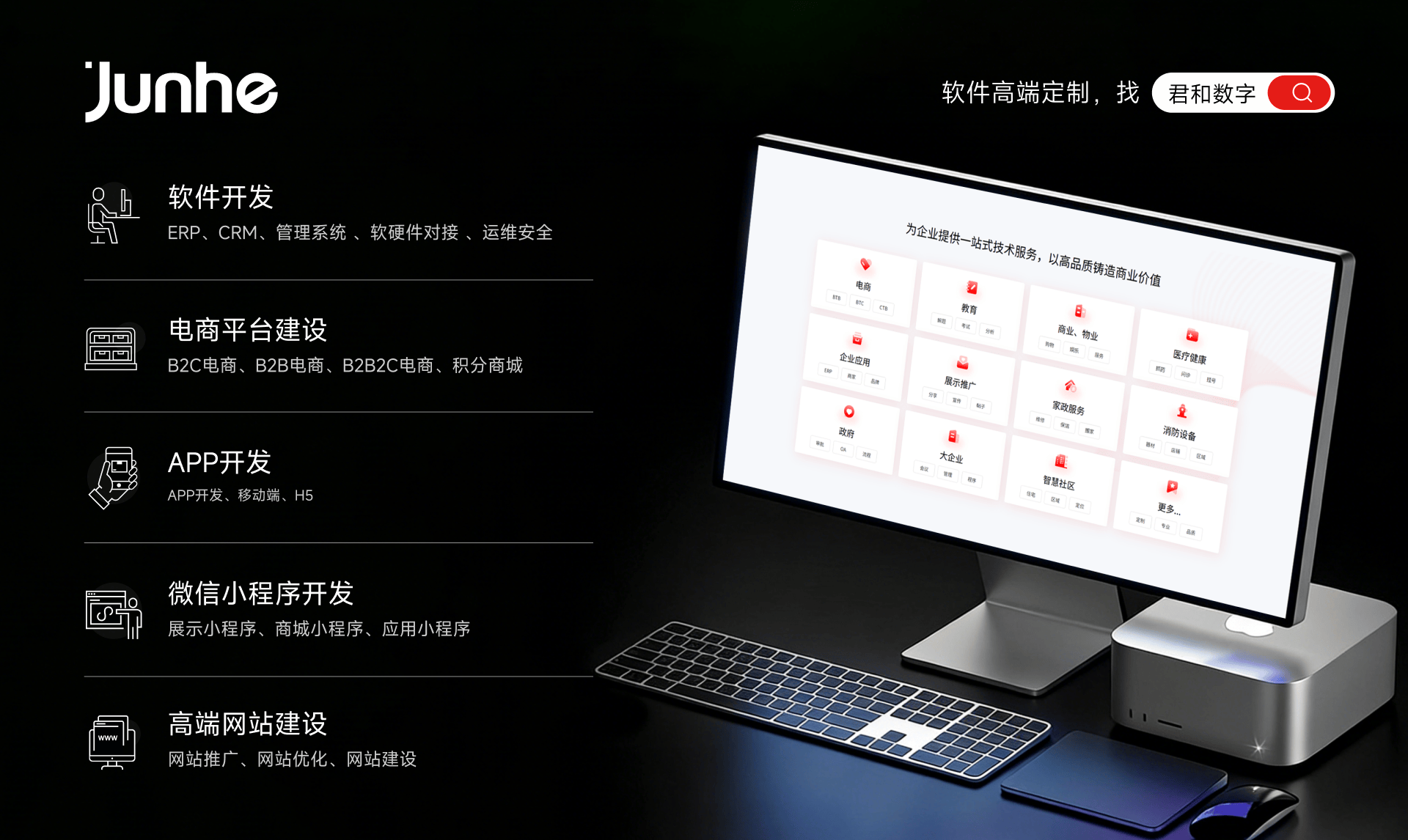 君和数字作为全栈式数字化解决方案领航者,深耕软件开发行业十五年,是专注为大型企业提供高品质数字化服务的全国性专业开发商,总部位于郑州,在北京设有办公点,可无缝对接北京本地各类大型项目,同时承接全国范围内的高端开发需求。