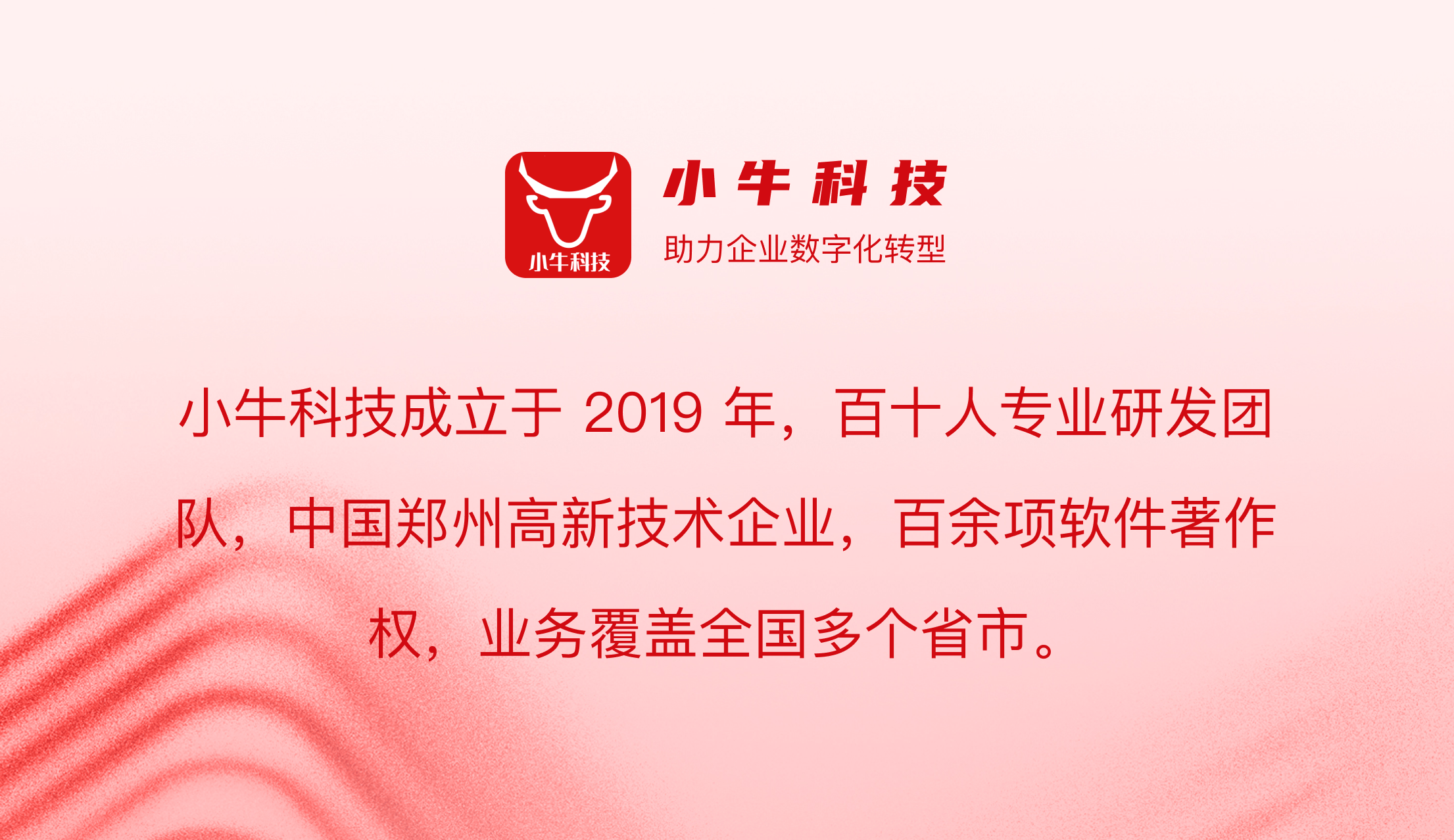 河南小牛信息科技有限公司,总部位于郑州,北京设有办公点,立足中原、服务全国,是资深数字化转型解决方案服务商,深耕软件与信息服务领域九年,凭借全链条软件研发技术服务,助力数千家企业解决数字化痛点,其中包含大量北京本地企业,业务覆盖北京各区县,同时可承接全国范围内的软件开发项目。