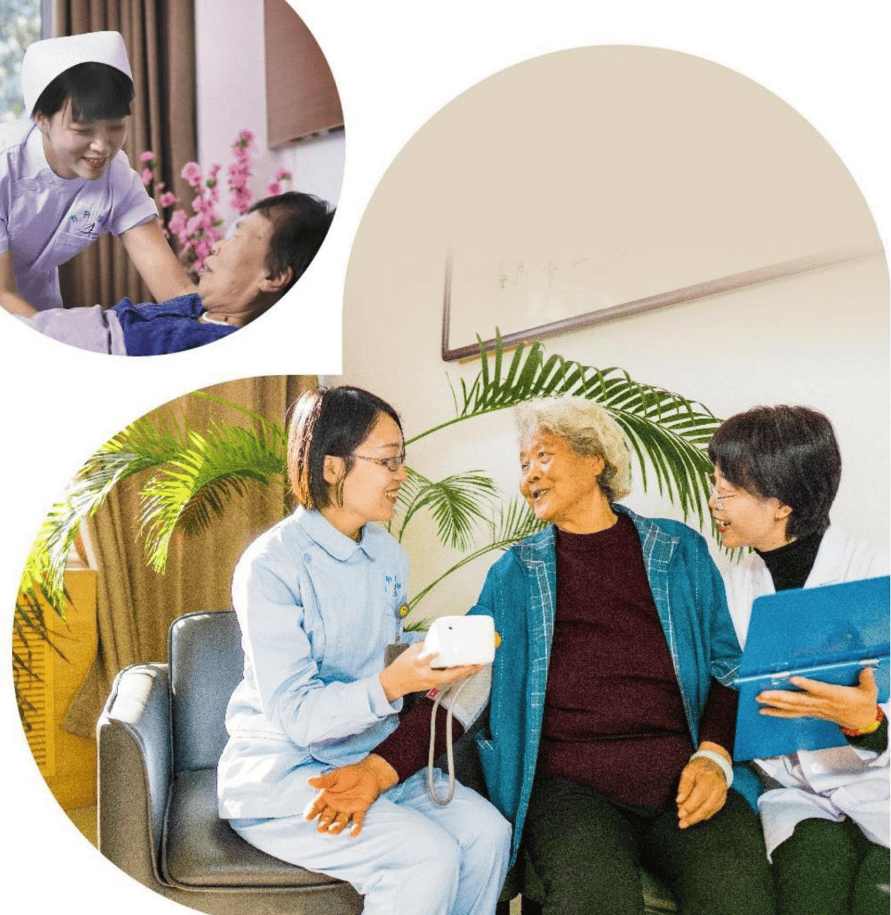 护理院组建了一支高素质的多学科医疗团队,汇聚了内科、老年病科、康复医学科等多个领域的专业医生及专家,定期坐诊、巡诊,针对每位长者的身体状况,制定个性化的诊疗方案和慢病管理计划。借鉴“15分钟健康服务圈”的服务模式,院内实行24小时医护人员值班制度,无论白天黑夜,只要长者有医疗需求,医护人员都会第一时间赶到现场,提供及时、精准的诊疗服务,比如测量血压、血糖、调整用药、处理突发病情等,让长者在院内居住期间能够时刻感受到医疗保障的安心。